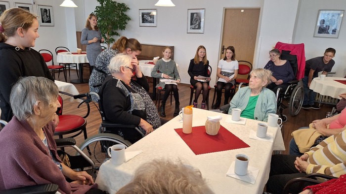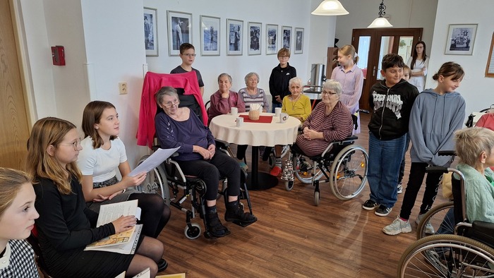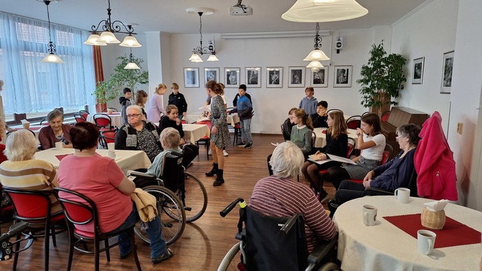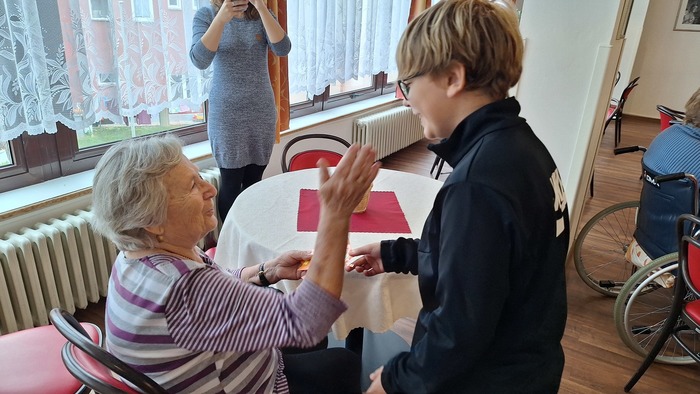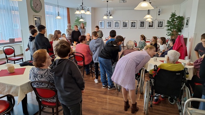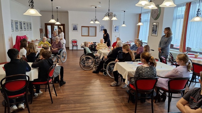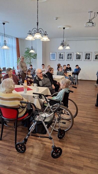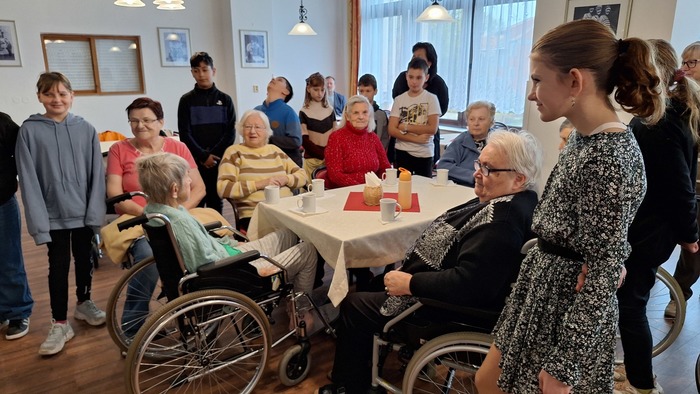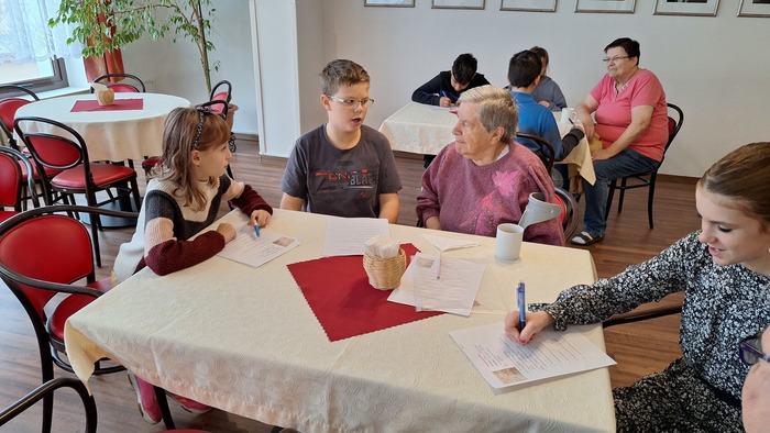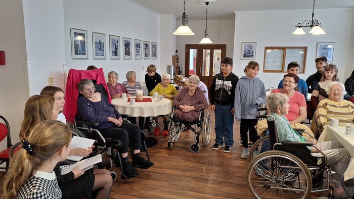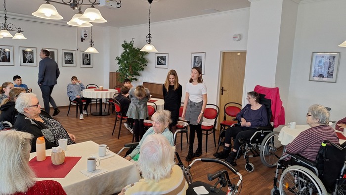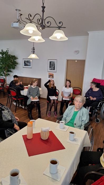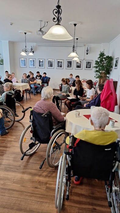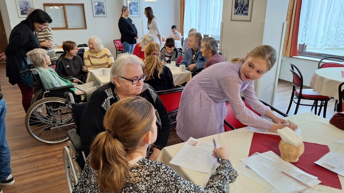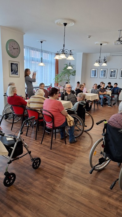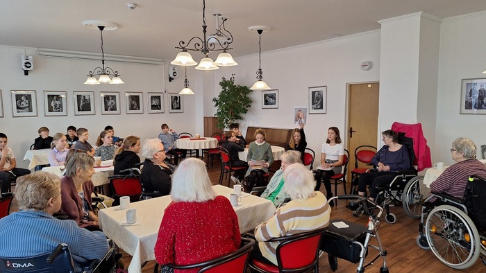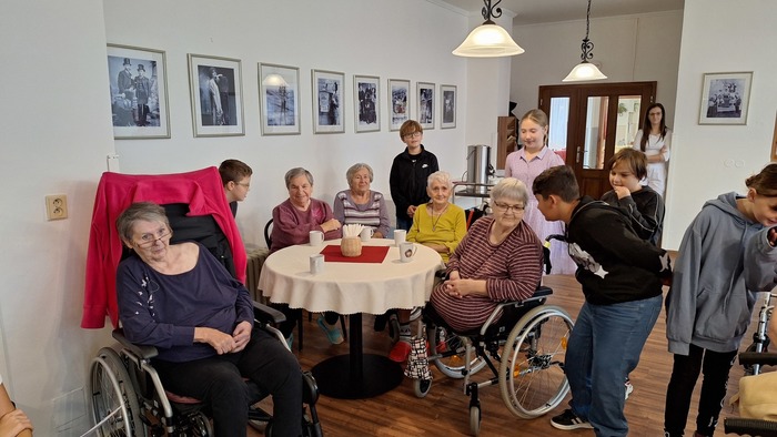 V pátek 25. října jsme v našem Domově přivítali žáky tř. 5.A Základní školy T. G. Masaryka v Podbořanech v doprovodu tř. učitelky Mgr. Jany Vrbové, Mgr. Jany Gábové a asistentky pedagoga pí Hany Bulánkové. Žáci předčítali obyvatelům domova pro seniory úryvky z knih, o kterých si pak společně vyprávěli. Zároveň si děti pro seniory připravily pracovní listy s dotazy ke čteným úryvkům. Díky tomu mohly dvě generačně zcela odlišné skupiny zjistit, jak se jim žije. Už teď se všichni těšíme na další společné setkání a za návštěvu dětem a pedagogickému doprovodu moc děkujeme.