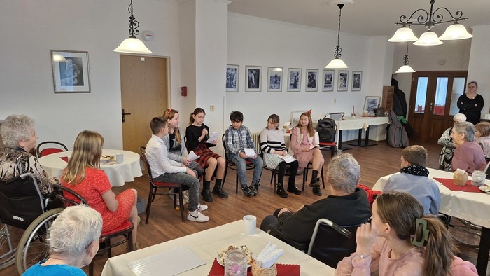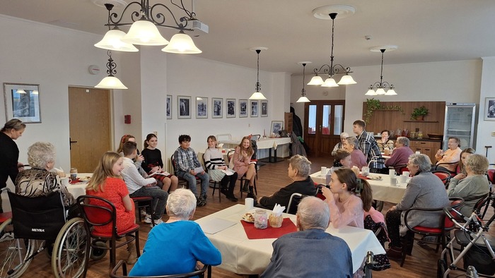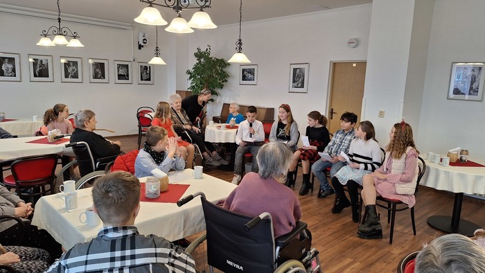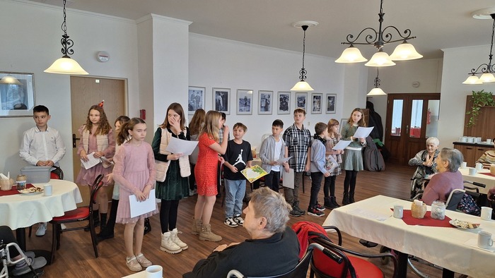 Ve čtvrtek 19. prosince do našeho Domova opět zavítaly děti z 5.A třídy Základní školy TGM v Podbořanech, aby našim klientům předčítaly úryvky z knih a povídaly si s nimi. Společně si připomněli vánoční tradice, ochutnali cukroví a zazpívali si koledy. Děti si také pro seniory připravily dárečky. Za příjemně strávený předvánoční čas dětem a paním učitelkám moc děkujeme a přejeme krásné Vánoce.