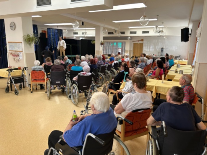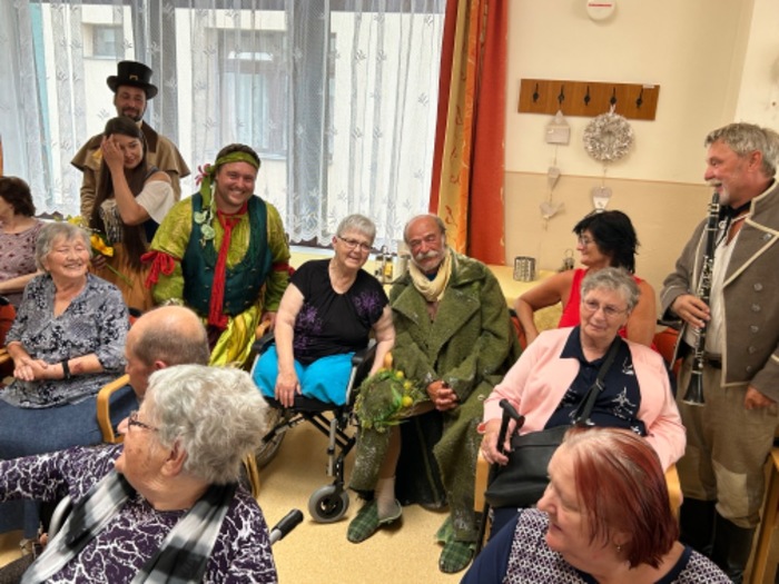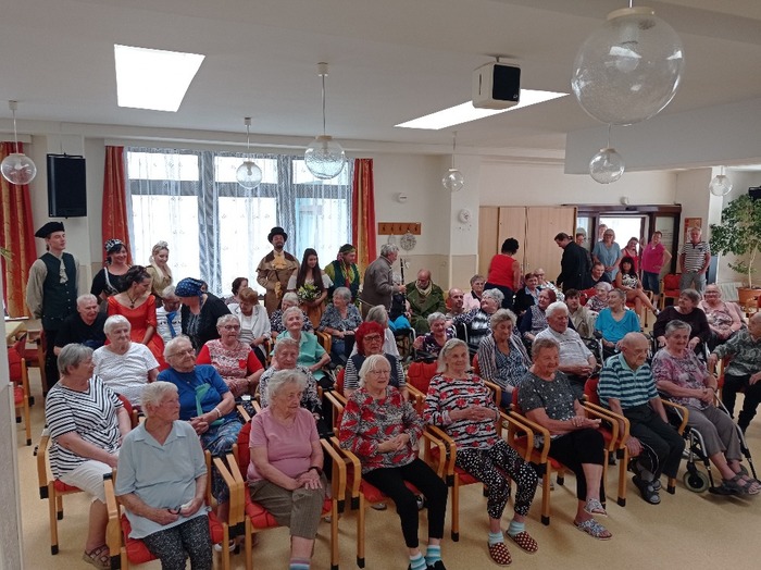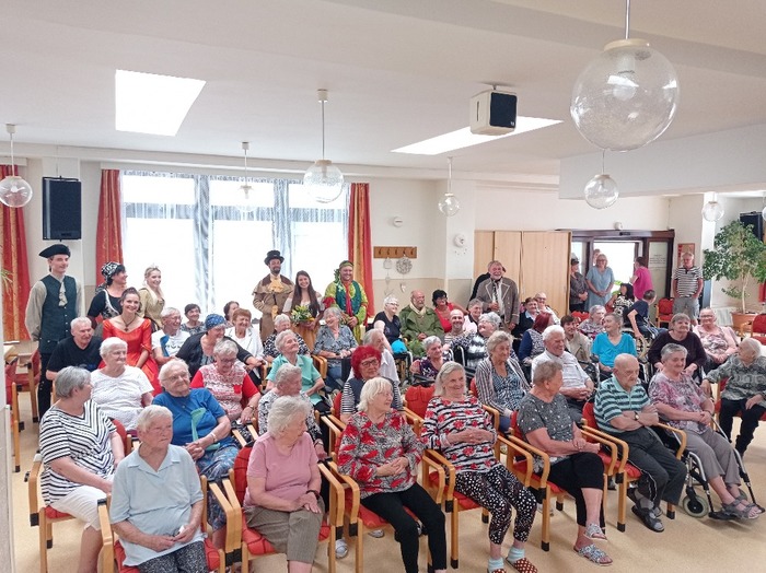 Cesta za divadelním představením je pro naše klienty často velmi náročná a představuje mnoho překážek. Proto jsme divadlo „přivedli“ do Domova a to prostřednictvím litvínovského souboru Docela velkého divadla. V loňském roce u nás litvínovský soubor představil dvě divadelní představení. V letošním roce také již podruhé herecký tým pod vedením paní Galinové, přivezl klasický příběh o odvaze, hrdosti, vzdělanost a lásce, ale i o zbabělosti, podbízivosti a nadutosti. Lucerna je klasickým dílem Aloise Jiráska a svým tématem dílem nadčasovým. Role Vodníka se výborně zhostil oblíbený divadelní, televizní a filmový herec Pavel Nový, známý například z komedie století, „S tebou mě baví svět“. Podbořany navštívil vůbec poprvé. Po skončení představení se ochotně věnoval nadšenému publiku z řad klientů Domova ale i veřejnosti. Děkujeme všem hercům litvínovského divadla, panu Pavlu Novému a především paní Janě Galinové za zprostředkování tohoto divadelního zážitku. Těšíme se na další spolupráci.