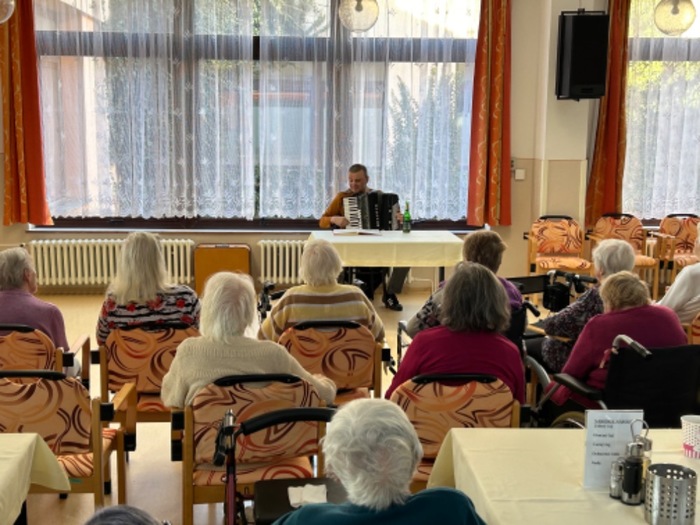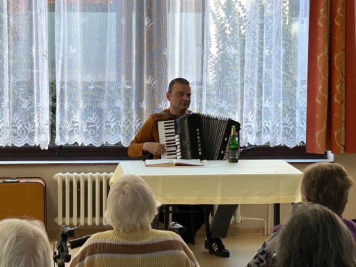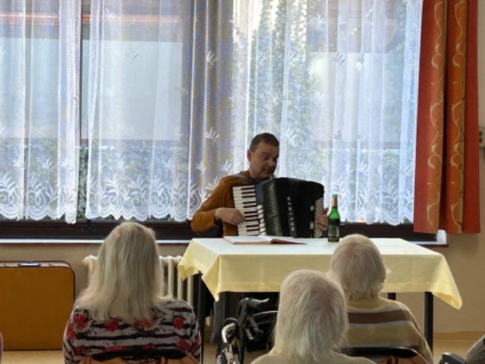 Letošní první víkendové hraní a zpívání v podání harmonikáře p. Lercha. Děkujeme
