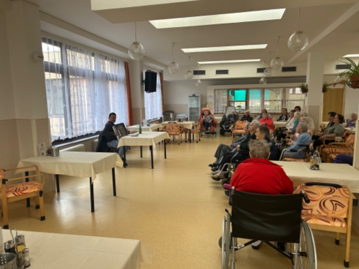 Den vzniku samostatného československého státu jsme oslavili hudbou a zpěvem v podání harmonikáře p. Lercha. Děkujeme