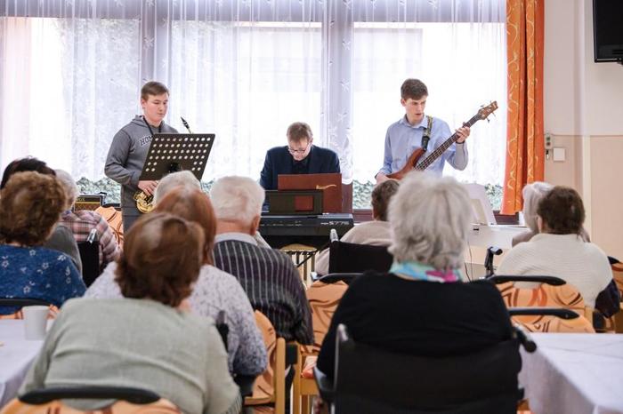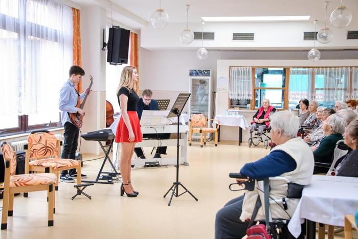 V úterý 5.4. proběhl v našem Domově koncert žáků a pedagogů Základní umělecké školy z Podbořan. Součástí byla také vernisáž výstavy výtvarných prací žáků této školy. Obě akce byly velmi inspirativní a těšily se velkému zájmu nejen obyvatel Domova ale i veřejnosti. Za milé a krásné hudebně-výtvarné odpoledne děkujeme všem vystupujícím žákům a pedagogům ZUŠ Podbořany a především panu řediteli Bc. Říhovskému a Mgr. Karolíně Neumann za organizaci celé akce. Vystoupení dětí a pedagogů mělo velký úspěch a tak se těšíme na další podobné akce.