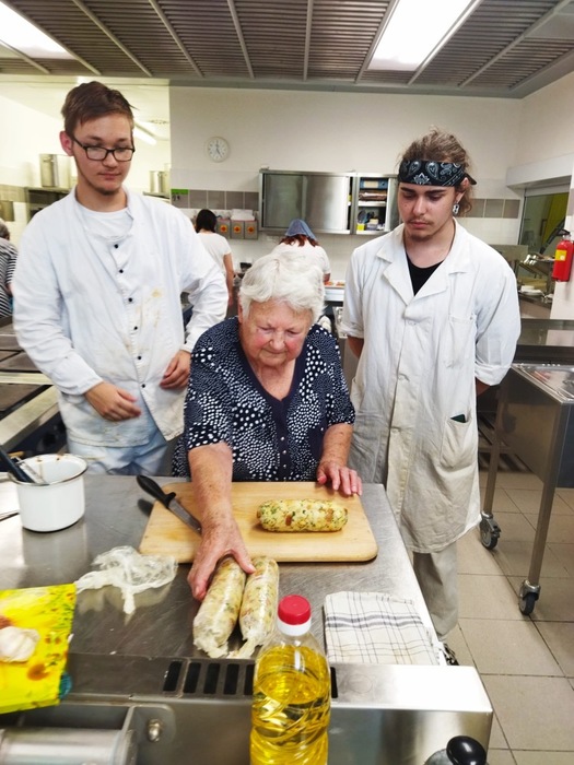V září se v našem Domově uskutečnila beseda na téma „kulinářské dědictví“, které se kromě klientek Domova zúčastnili také studenti 2.ročníku učebního oboru kuchař-číšník z podbořanského Gymnázia a středního odborného učiliště. Z této mezigenerační spolupráce vzešlo 6 rodinných receptů, které ožily během kulinářského odpoledne v prostorách školní jídelny GSOŠ Podbořany.