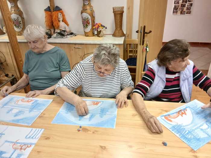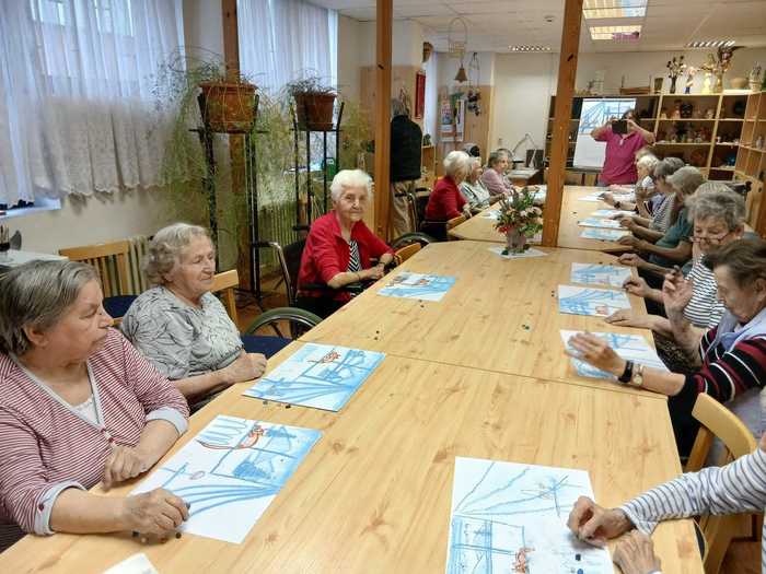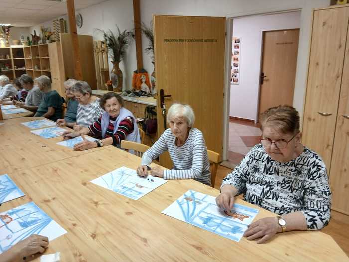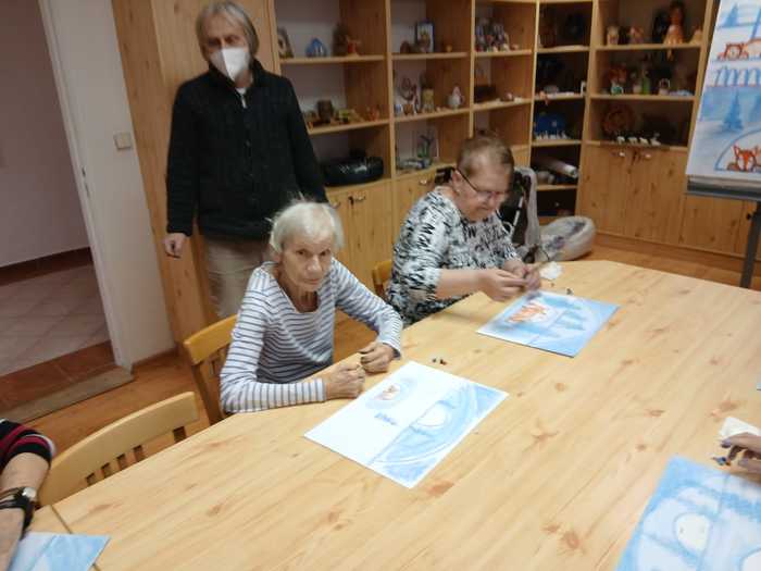 Ve středu 18. února dopoledne klienti Domova opět malovali obrazy s výtvarníkem p. Lakomým.