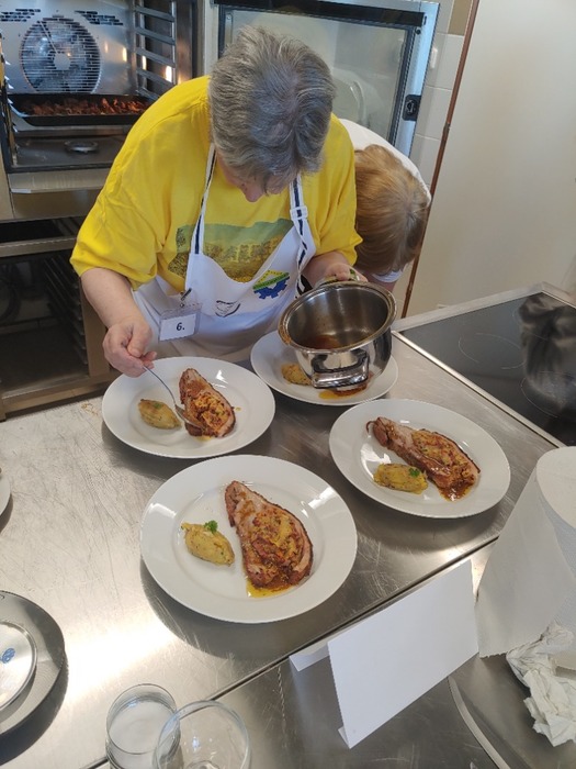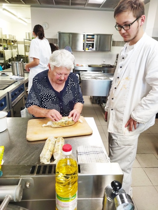 V loňském roce jsme byli pozváni Gymnáziem a SOŠ v Podbořanech k účasti na Mezinárodní kuchařské soutěži. Akce se zúčastnilo několik soutěžních týmů složených ze žáků gastronomických oborů z Polska, Německa a studentů SOU Podbořany. Své kulinářské umění předvedly také 2 týmy z našeho Domova. Výsledkem celého projektu je mezinárodní kuchařka, kde jsou také recepty našich zástupců - zelná polévka z hlávkového zelí, moravský vrabec, karlovarský knedlík a tuřínové zelí, bramborová litina, škvarkové placky, šmorn s klevelou (švestkovou omáčkou) či hruškovo-bezinkový dezert. Součástí tohoto mezinárodního projektu bylo také předání dárků vyrobených klienty našeho Domova. Naše velikonoční pomlázky tak znají v šesti evropských zemích. Poděkování patří všem výjimečným kuchařkám, paní Boženě Sýkorové, Erice Löffelmannové, Hildě Bláhové, Anně Lejčkové, Věře Pokrupové, Miladě Veselské a také tvůrcům pomlázek paní Boženě Sýkorové, Hildě Bláhové, Olze Kudrnové, Anně Lejčkové, panu Otto Segešovi a Augustinu Karvayovi. Děkujeme také za pozvání a skvělou organizaci celému realizačnímu týmu Gymnázia a SOŠ Podbořany.