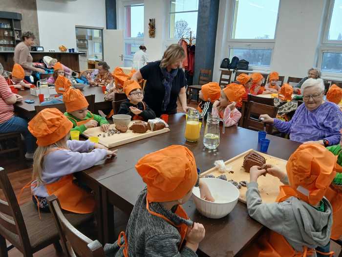 Ve středu 3. prosince opět naši senioři přijali pozvání od Gymnázia a Střední odborné školy v Podbořanech na společné vánoční pečení spolu se studenty SOU a s dětmi z Mateřské školy. Díky tomu se mohly potkat tři generačně zcela odlišné skupiny a strávit spolu v tomto předvánočním čase chvilku a popovídat si.