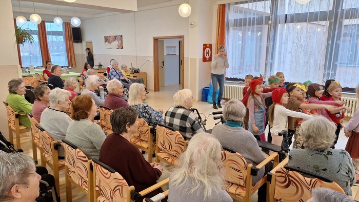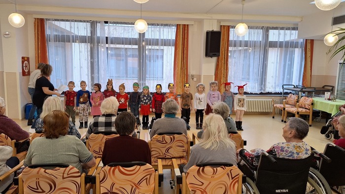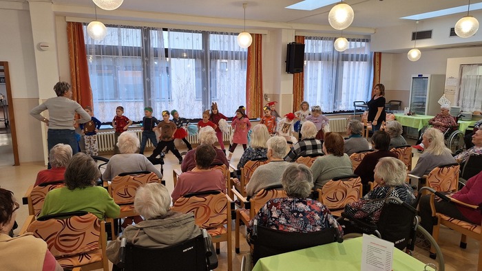 Čekání na vánoční svátky nám v pátek 13. prosince zpříjemnily svým krásným vystoupením děti z Mateřské školy Podbořany, Hlubanská v doprovodu paní učitelky Ivany Reiserové a paní učitelky Zdeňky Churanové. Za vystoupení a dárečky, které děti samy vyrobily moc děkujeme a přejeme všem krásné a pohodové Vánoce.