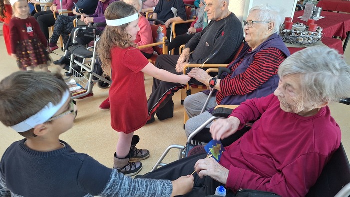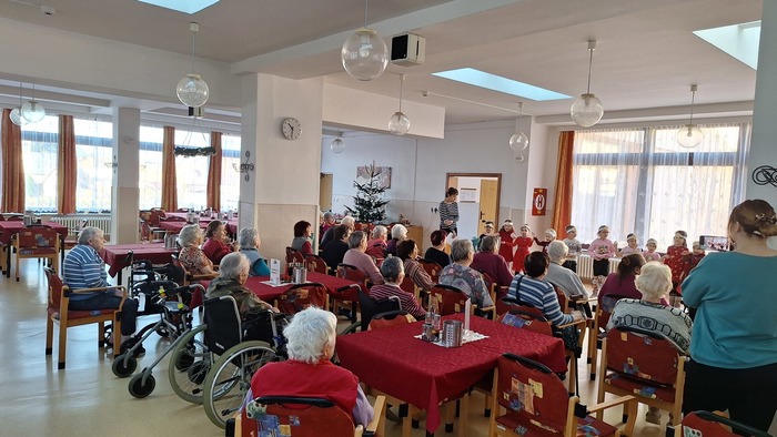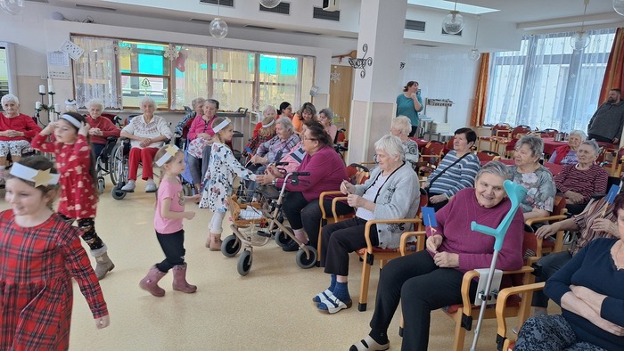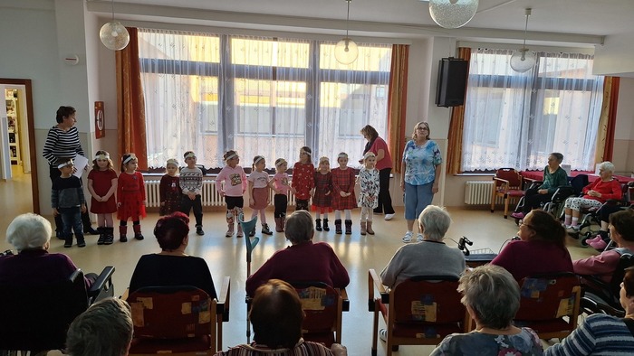 A zase po roce obyvatelům Domova zpříjemnily čekání na vánoční svátky děti z Mateřské školy Podbořany, Hlubanská v doprovodu paní učitelky Ivany Reiserové a paní učitelky Zdeny Churanové. Za krásné vánoční vystoupení a dárečky moc děkujeme a přejeme všem krásné a pohodové Vánoce.