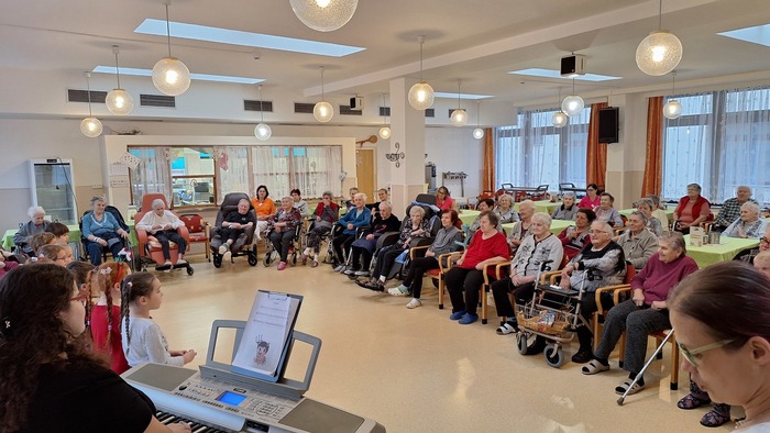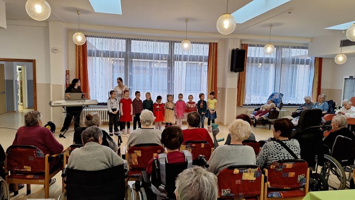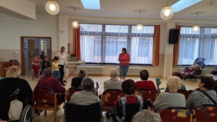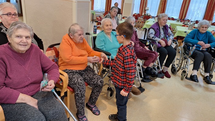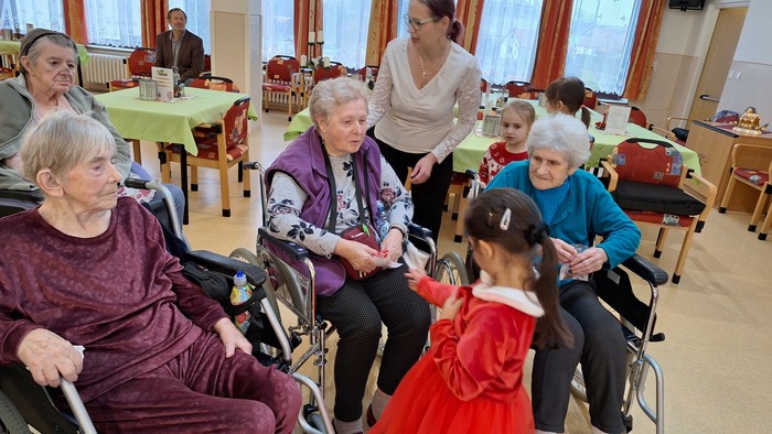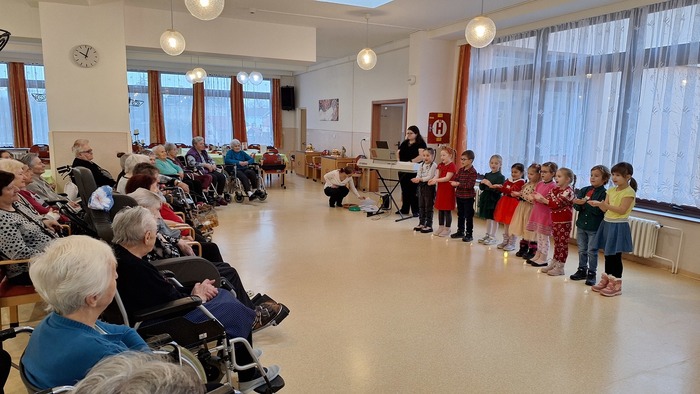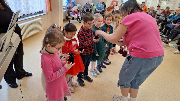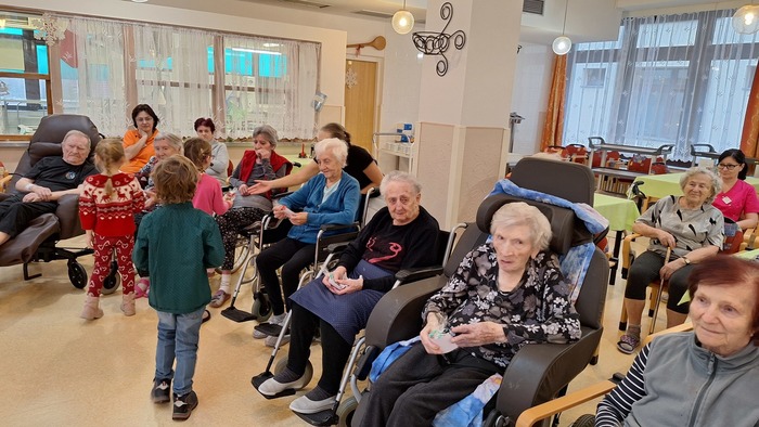 Ve čtvrtek 4. prosince nás v Domově opět po roce navštívily děti z Mateřské školy Podbořany - Pastelka se svým vánočním vystoupením za doprovodu paní učitelky Köröšiové a paní učitelky Wolfové. Senioři od dětí převzali vánoční dárečky a vzájemně si popřáli krásné a pohodové Vánoce.