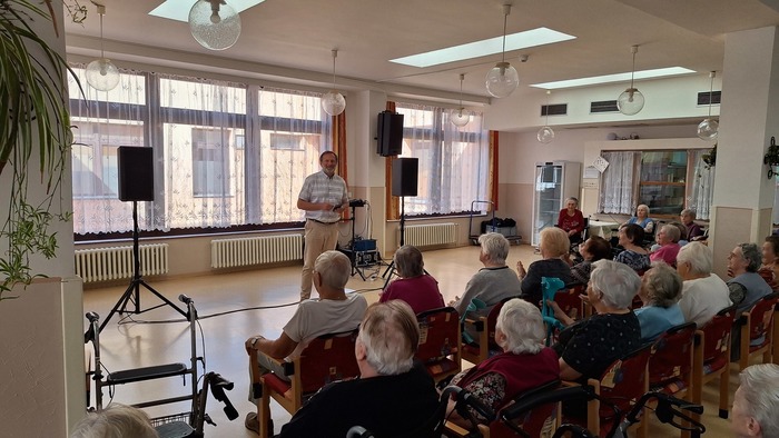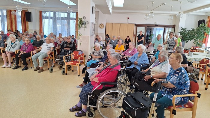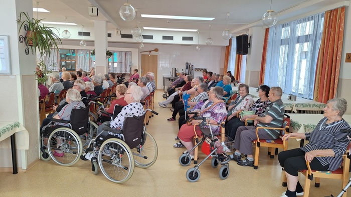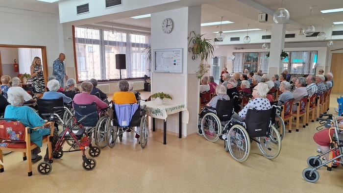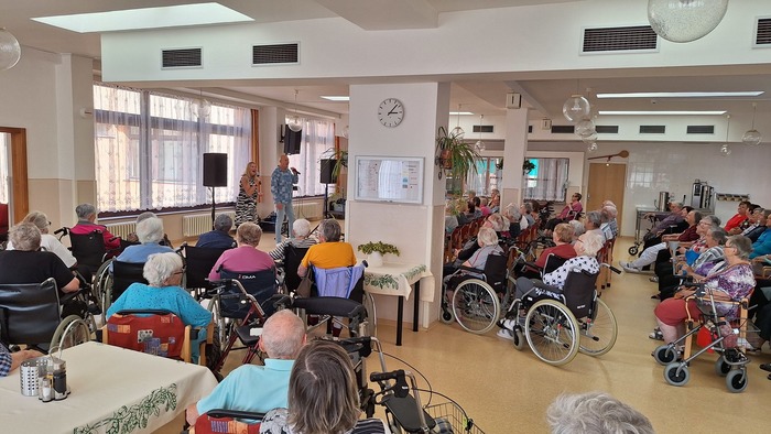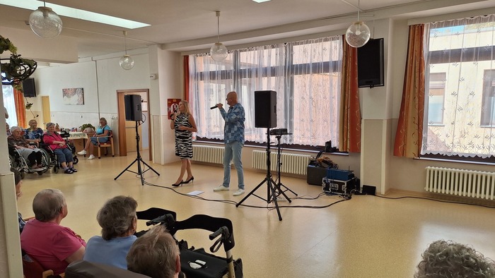 V pondělí 8. září zazněly naším Domovem melodie písní, které nestárnou v podání pěveckého dua Markéty a Romana ze Šlágru. Děkujeme za krásné odpoledne a nezapomenutelný hudební zážitek.