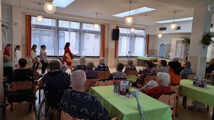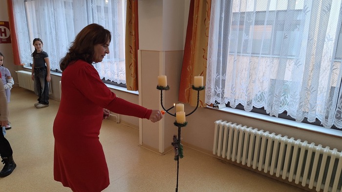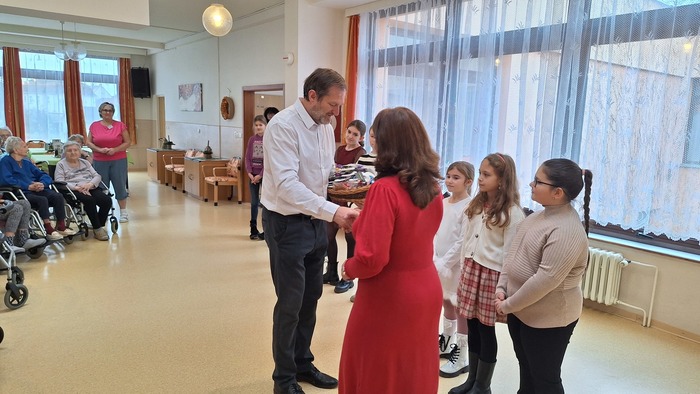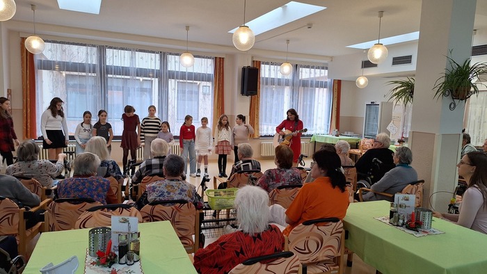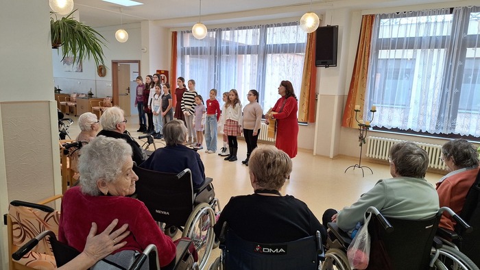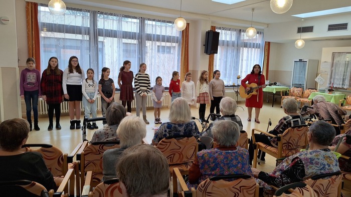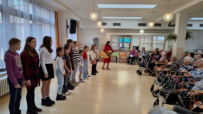 V pondělí 2. prosince nám čekání na Vánoce přišli zpříjemnit žáci Základní školy TGM v Podbořanech svým zpěvem za hudebního doprovodu pí Čadové, která u nás v domově zároveň zapálila první adventní svíčku. Všem žákům a pedagogickému doprovodu děkujeme.