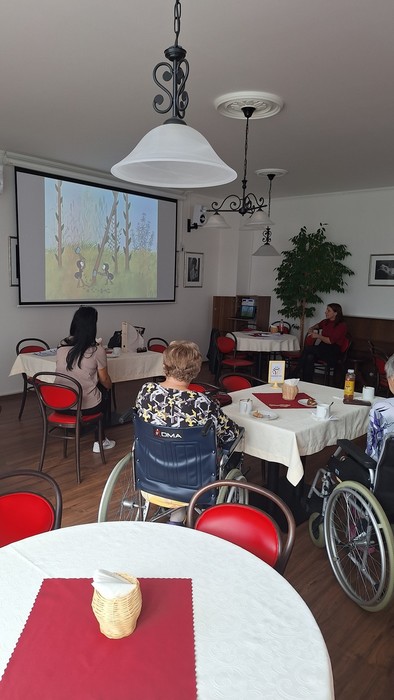 V pátek 27.9. jsme si v rámci programu pro seniory – Vzpomínkování, pořádané Sociálním centrem pro rodiny s dětmi v Žatci společně zavzpomínali a popovídali v kavárničce domova na téma večerníčky a pohádky. Děkujeme pracovnicím Sociálního centra v Žatci za příjemně strávené odpoledne, které si klienti v jejich společnosti velmi užili.